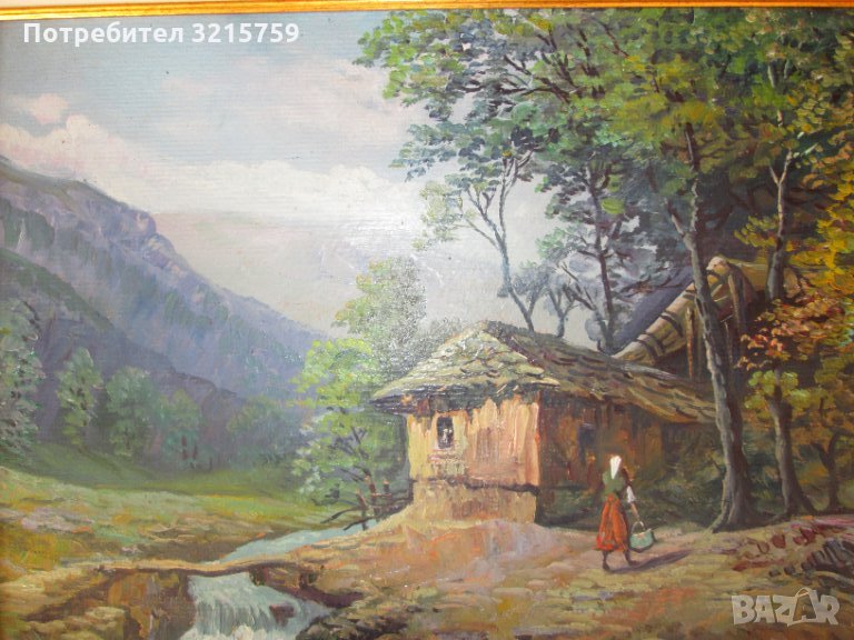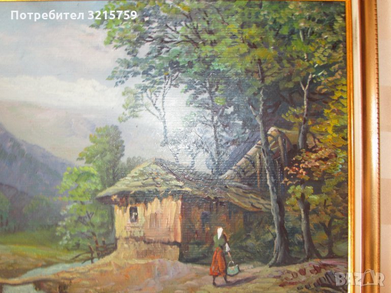 Продавам Стара картина на художника Виктор Попов ,началото на 20 век -селски пейзаж,маслени бои ,картон .Нова стилна рамка.