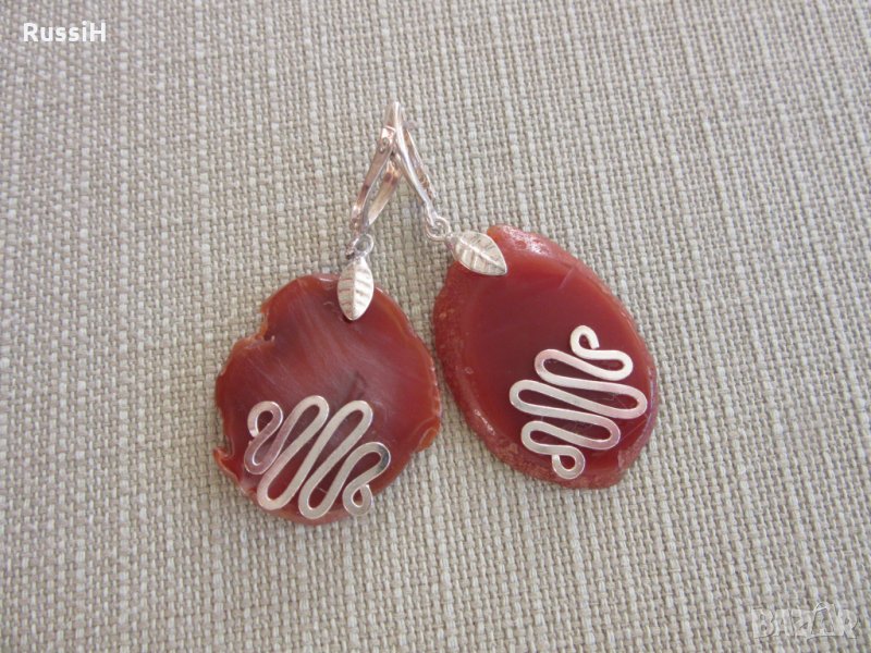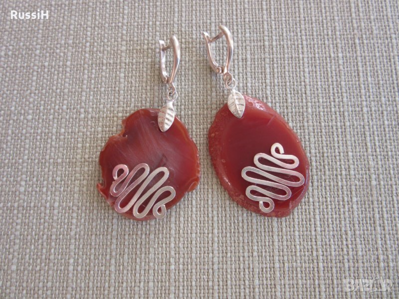 Дизайнерски сребърни обеци с ахат с английско закопчаване