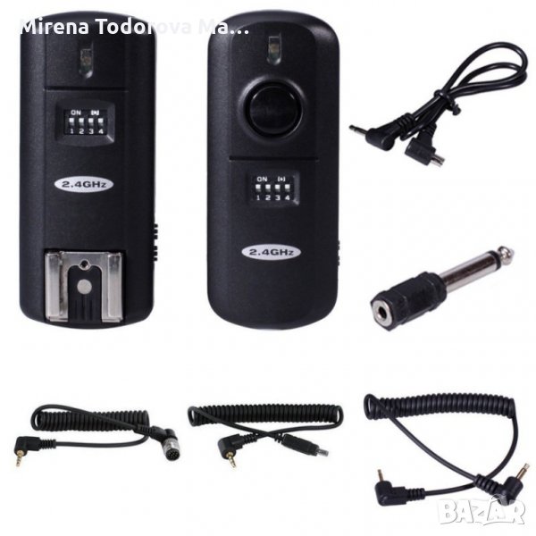 Включва: задействане на безжична светкавица на камерата и функция за дистанционно управление на камерата (1 предавател, 1 приемник) + кабел за камера N1 + кабел за камера N3 + кабел за синхронизиране на капачка на светкавица + кабел за синхронизиране на адаптер + синхронизиране на адаптера за
