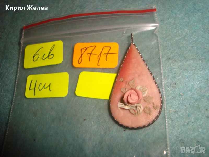 СТАР ФЛОРАЛЕН РЕТРО ПОСРЕБРЕН ПЕНДАНТ РОЗА МЕДАЛЬОН от ПОЛИМЕРНА ГЛИНА 8717