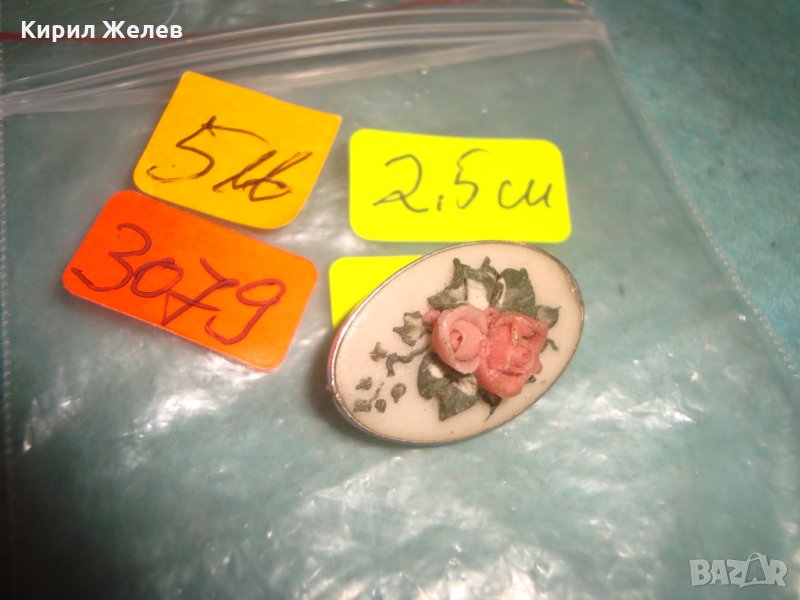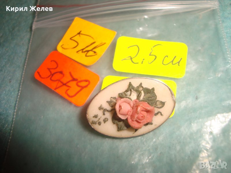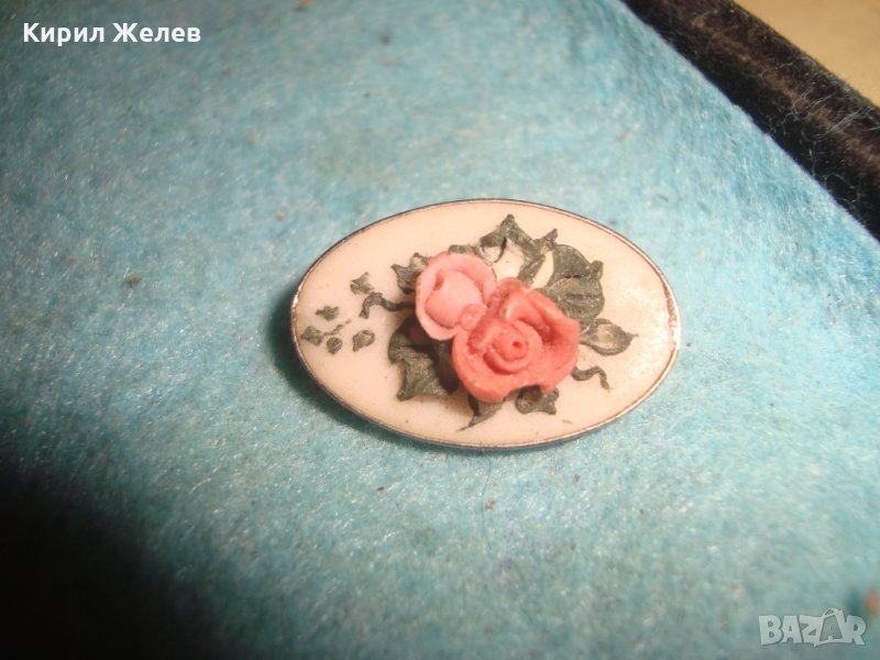 СТАРА ПОСРЕБРЕНА АРТ ДЕКО СТИЛ ВИНТИДЖ БРОШКА - РОЗИ РЪЧНА ИЗРАБОТКА ПОЛИМЕР 3079