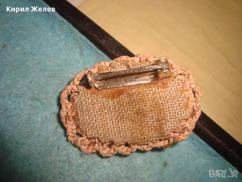 СТАРА ФЛОРАЛНА ПЛЕТЕНА ТЕКСТИЛНА БРОШКА ЦВЕТНА АРТ КЕРАМИКА РЪЧНА МАЙСТОРСКА ИЗРАБОТКА 12337