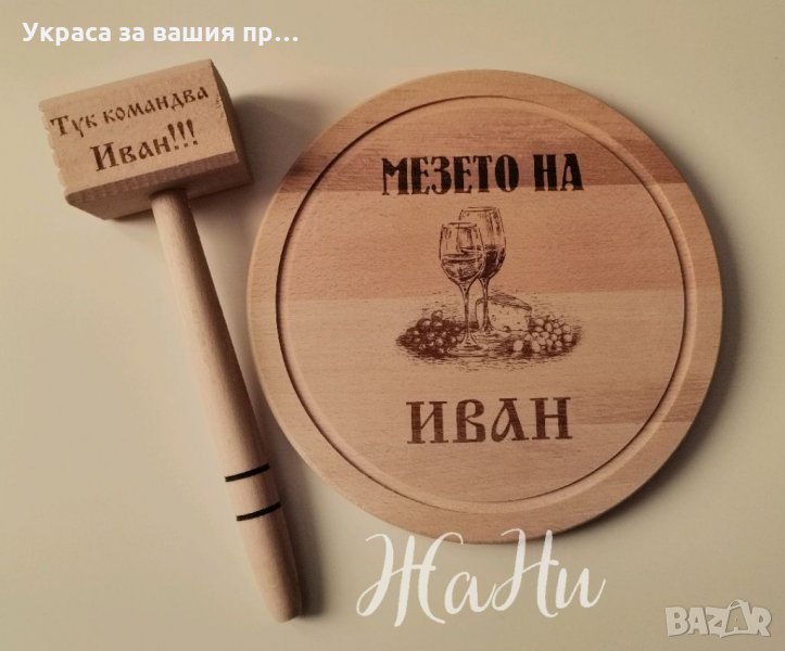 * лазерно гравирана дъска и чук с текст и име по поръчка