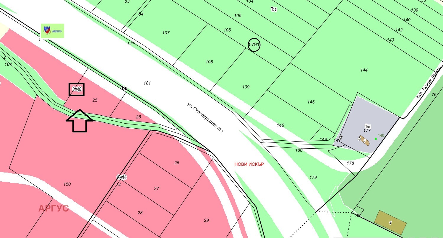 Агенция 'АРГУС' продава поземлен имот от южната страна на Околовръстен път, с лице 62 м към бъдещото му разширение. Той се намира в непосредствена близост до разклона за село Локорско. Попада в устройствена зона Смф2. Подходящ е за изграждането на склад или сервиз.