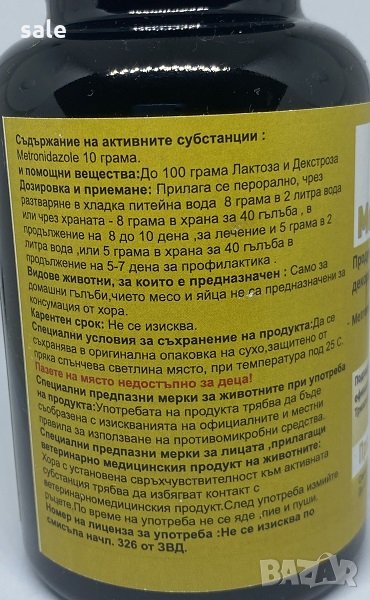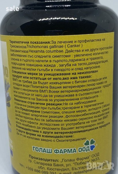 Дозировка:8 грама в 2 литра вода или в храната за 40 птици в продължение на 8-10 дена