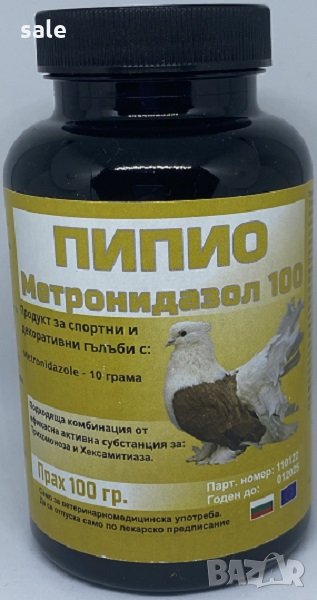 Пипио Метродиназол 100 -100 грама прах за птици,гълъби.
