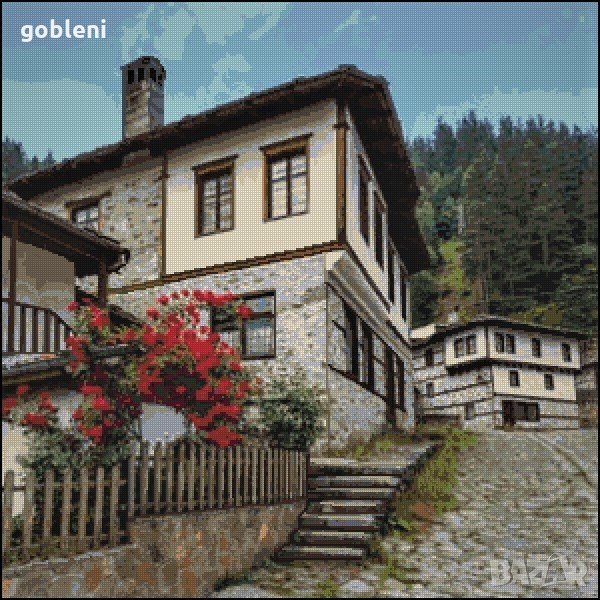 гоблен "КЪЩАТА С ТРЕНДАФИЛА" серия "БЪЛГАРИЯ"- ДБ; шев - 1:1; размери /35*35/ см.; 45цвята. → Обява 35516325