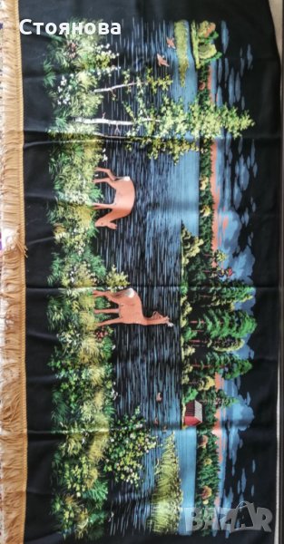 Ковьор 70х140 см. рисуван с елен, сърна, върху черен вълнен плат → Обява 35517232