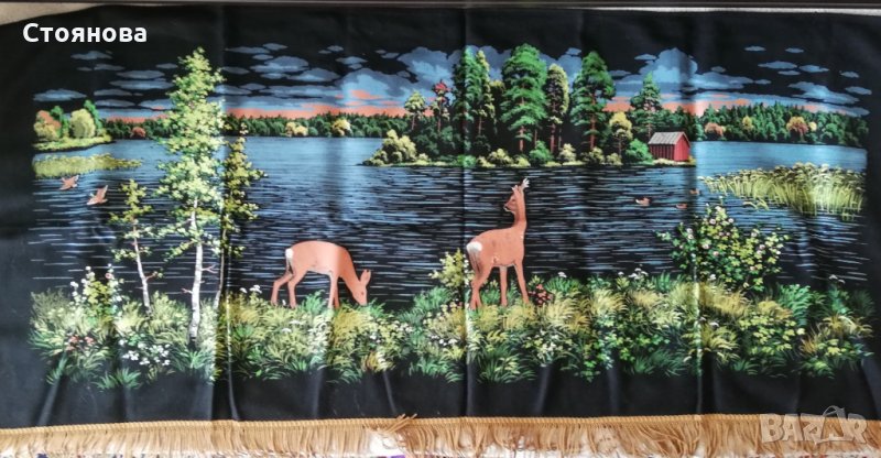 Ковьор 70х140 см.  рисуван с елен, сърна, върху черен вълнен плат , снимка 1 - Антикварни и старинни предмети - 35517232 Ковьор 70х140 см.  рисуван с елен, сърна, върху черен вълнен плат , снимка 2 - Антикварни и старинни предмети - 35517232 Ковьор 70х140 см.  рисуван с елен, сърна, върху черен вълнен плат , снимка 3 - Антикварни и старинни предмети - 35517232 Ковьор 70х140 см.  рисуван с елен, сърна, върху черен вълнен плат , снимка 4 - Антикварни и старинни предмети - 35517232 1/4