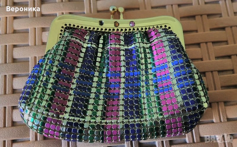 В много добро състояние. Лъскаво и много меко на допир. Забележка: Едното камъче на закопчалката от едната страна липсва (вижда се на снимка 2: първото от ляво на дясно). Размери: 10 х 7 см.