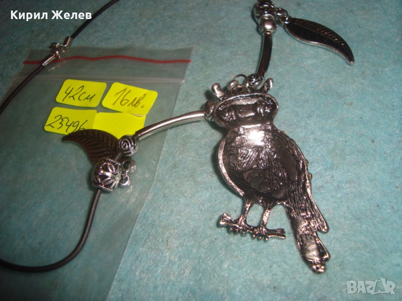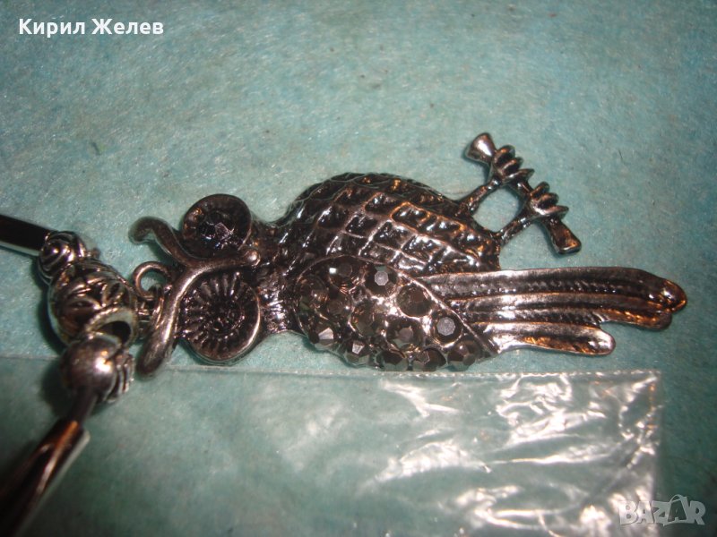 СРЕБРИСТ ФИГУРАЛЕН АРТ ФЕШЪН ПЕНДАНТ ПТИЦА БУХАЛ СКЪПОЦЕННО КОЛИЕ 25496