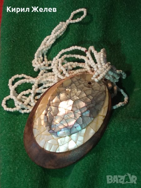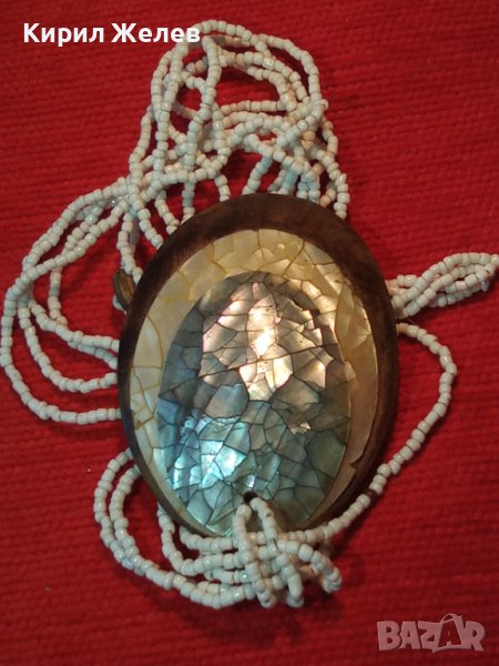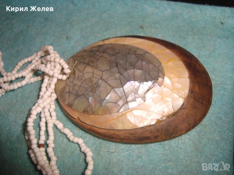 РАЗКОШНО МЪНИСТЕНО КОЛИЕ МЕДАЛЬОН от САНДАЛОВО ДЪРВО с РЪЧНО ИНКРУСТИРАН КРАЛСКИ СЕДЕФ 25504