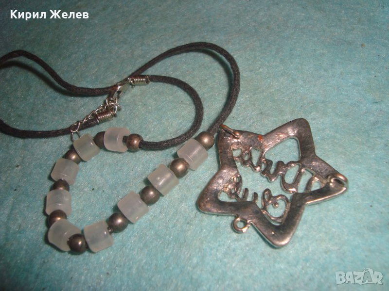 ВИНТИДЖ КОЛИЕ и СРЕБРИСТА ЗВЕЗДОВИДНА АРТ ВИСУЛКА МЕДАЛЬОН с КРИСТАЛИ 25502