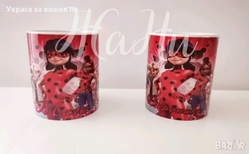 Чаша с име по поръчка с Калинката и черния котарак → Обява 35519170