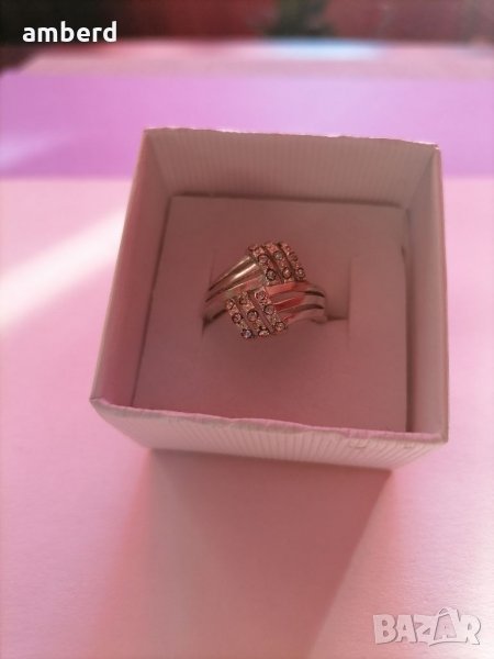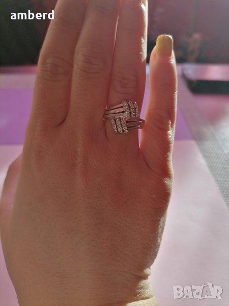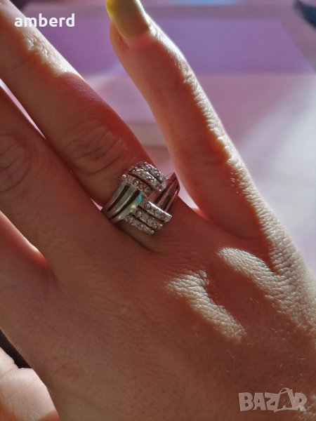 Масивен и елегантен пръстен, изработен от сребро проба 925 и 18бр бели циркони. Вътрешен диаметър 18мм.