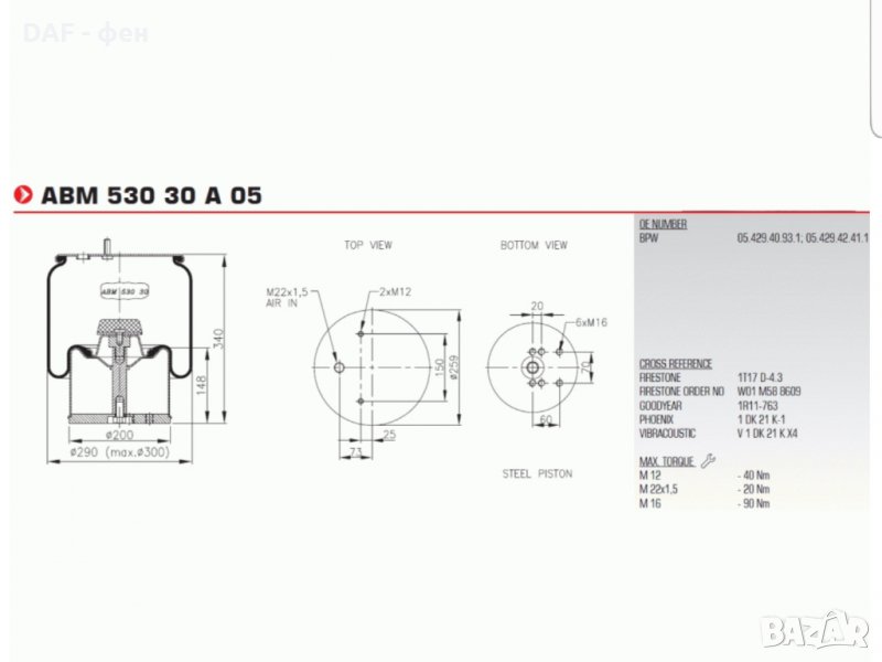 Въздушна възглавница 940MB BPW → Обява 35519624