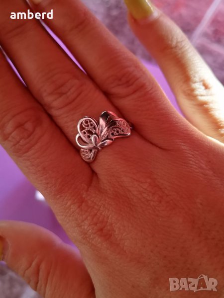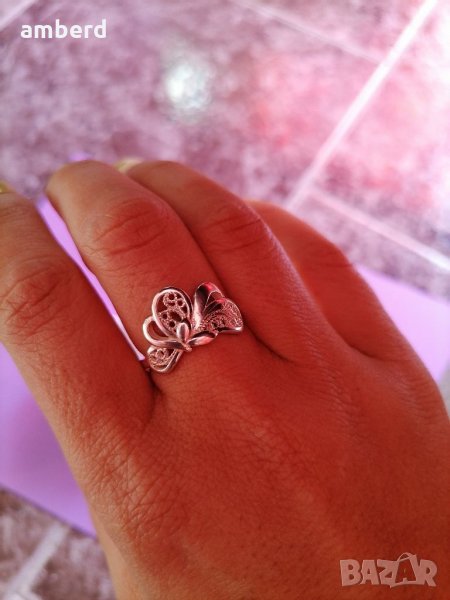 Стилен, елегантен и нежен пръстен, изработен от сребро проба 925. Вътрешен диаметър 18мм. Можем да ви изработим този модел в желан от вас размер.