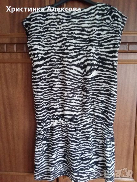 Продавам лятна рокля с тънка приятна материя и хастар. Цвят черен, сив и мръсно бял. Роклята е права, с ластик и се носи лежерно. Дължина на роклята 83 см от които 53 см е горната част над ластика и 30 см долната част.