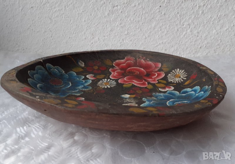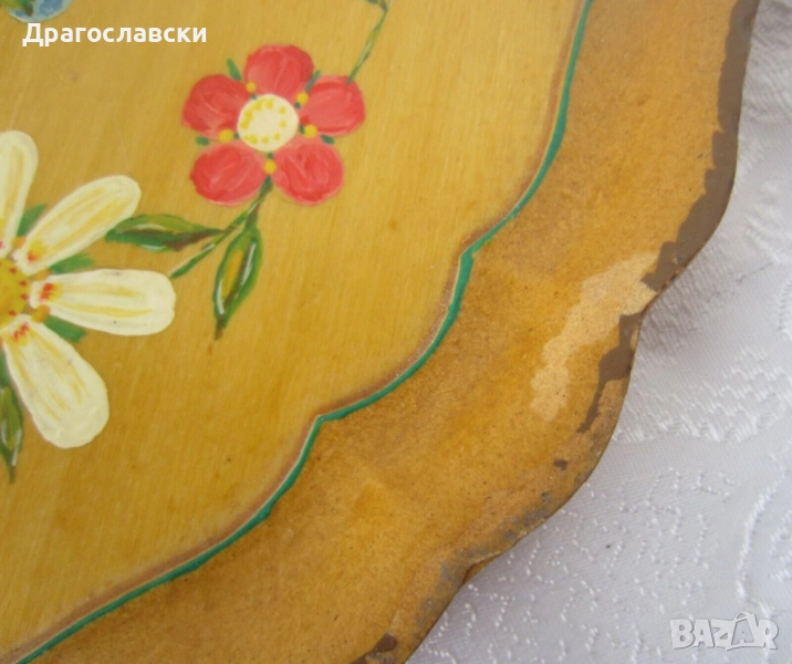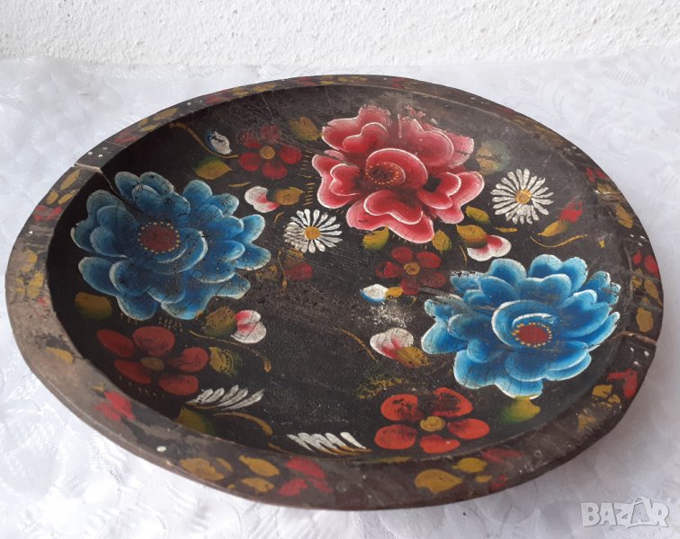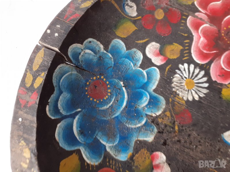 - стара дървена рисувана чиния - поднос от дърво 28 см - 25 евро