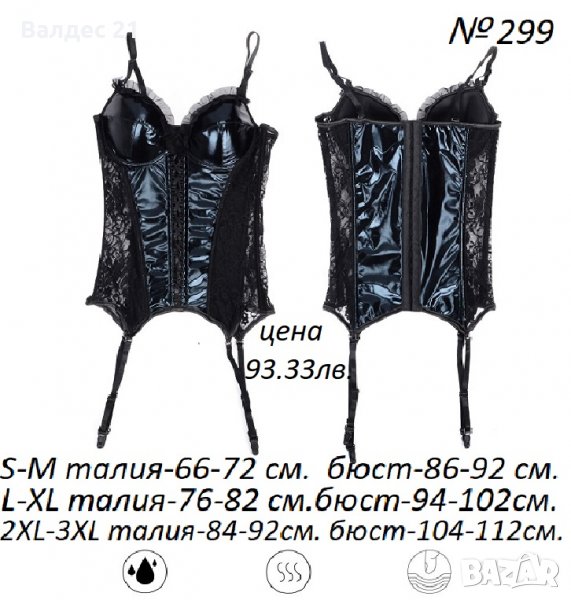 - На една от снимките са написани номер на модела, цена, както и минималното и максималното разтягане на всеки от размерите на този артикул. Хубаво е да има 2-4 см. толеранс между персоналните мерки и максималното разтягане на този модел, моля обърнете им внимание;
