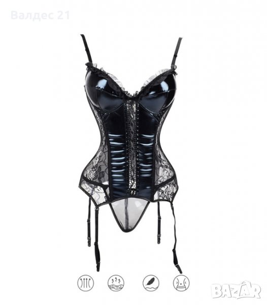 Еротичен кожен / латексов корсет с жартиери в стил BDSM