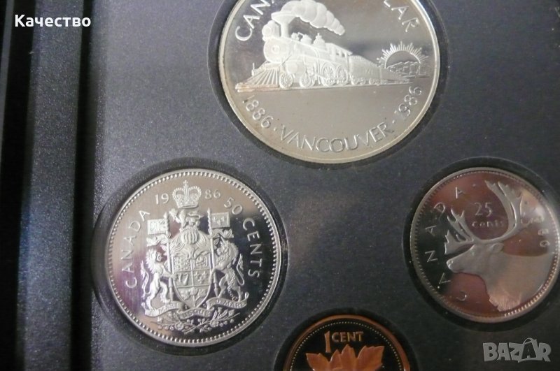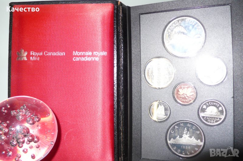 Колекционерски монети от Канада запечатани от банка в специален плакет. Не са били в употреба специално издание от 1986.
