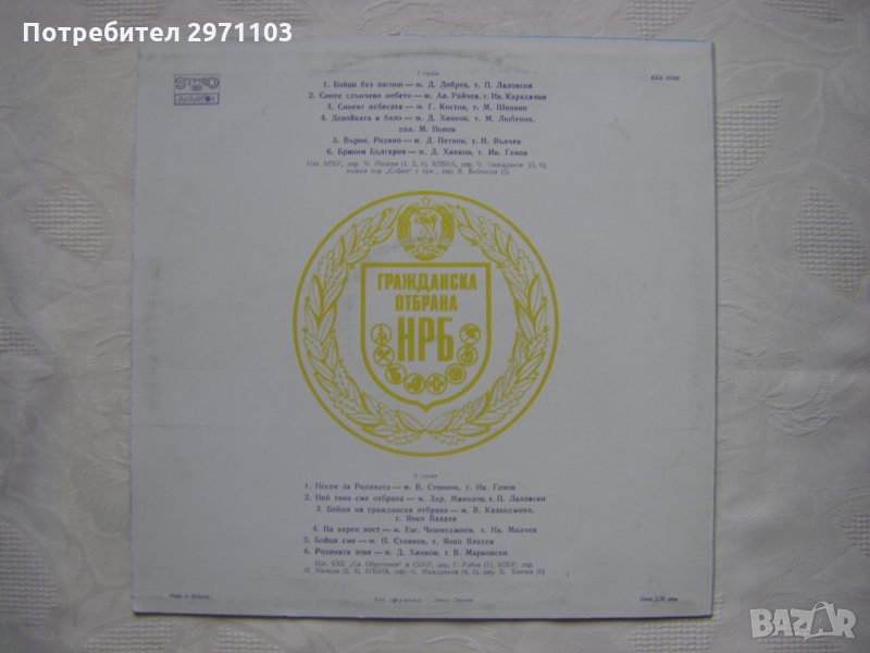 Изп. АПБР, дир. М. Милков (1, 2, 4), АПБНА, дир. Ч. Маждраков (3, 6), мъжки хор "София" с орк., дир. В. Бобевски (5)
