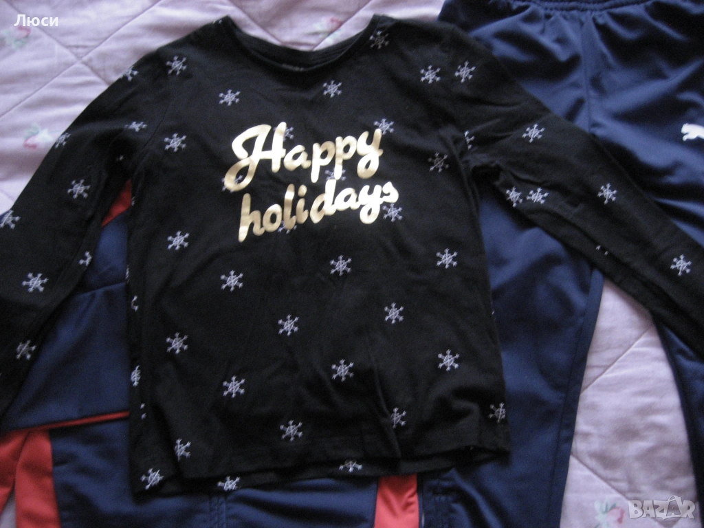Само лично предаване...Много запазени дрехи , без забележка . На първите 3 снимки анцуг на adidas размер 116 + подарък блуза = цена 12 ев . На 4-6 сн. комплект от дънки и блуза , размер 110 - цена 10 ев . На 7-8 комплект от дънки размер 110 и поларен суитшърт , размер 122 = цена 10 ев . На последни 3 снимки дрешки+пижамки размер 122 (без забележки ) = цена 10 ев