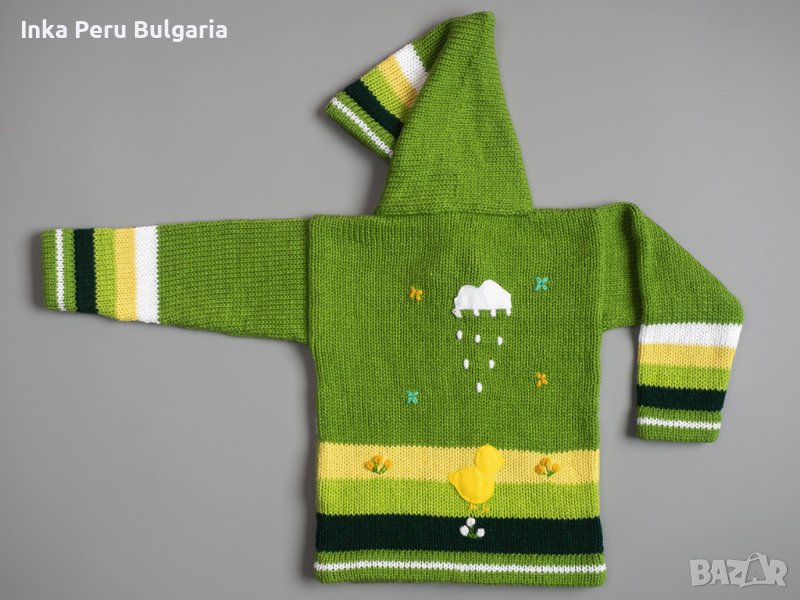 Известни в Перу с името Chompas Arpilleras, жилетките са ръчно изработени от занаятчии от коренното население на перуанските Анди, от древните култури Аймара и Кечуа. Изобразяват сцени от перуанската природа както отпред, така и отзад на дрехата. Слънцето свети в планините, а лами и пилета се хранят в подножието. Всеки детайл е ръчно зашит и завършен, за да се създаде 3-D ефект. Можем да Ви предложим широка гама от цветове за момчета и момичета, както и избор от размери от 0 до 7 години.