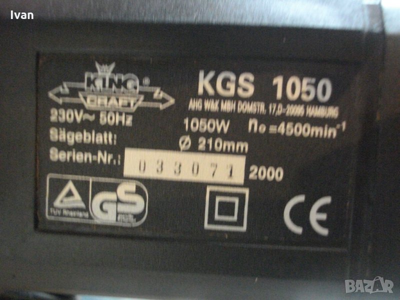 ф210мм-1050 Вата-Немска-Пендула-Повдигащ Циркуляр За Рязане-Почти Нов-Отличен-King Craft KGS 1050