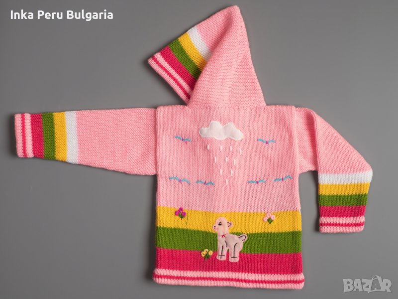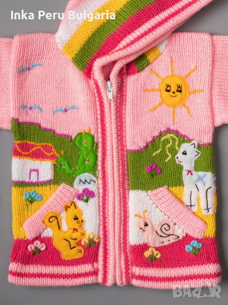 Известни в Перу с името Chompas Arpilleras, жилетките са ръчно изработени от занаятчии от коренното население на перуанските Анди, от древните култури Аймара и Кечуа. Изобразяват сцени от перуанската природа както отпред, така и отзад на дрехата. Слънцето свети в планините, а лами и пилета се хранят в подножието. Всеки детайл е ръчно зашит и завършен, за да се създаде 3-D ефект. Можем да Ви предложим широка гама от цветове за момчета и момичета, както и избор от размери от 0 до 7 години.
