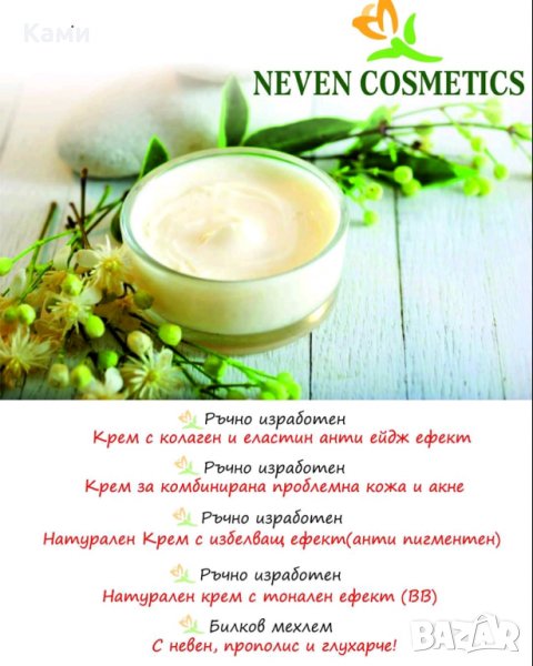 Ръчно изработени натурални кремове за лице ,изцяло приготвени от чисти съставки предназначени за алергични и проблемни кожи,и за хора, които просто искат да ползват билкова и натурална козметика !