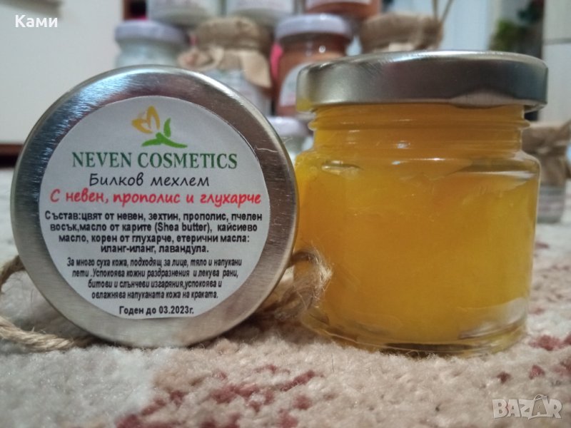 5.Билков мехлем с невен,прополис и корен от глухарче за много суха кожа на тялото и лицето,рани,екземи, псориазис и слънчеви и битови
