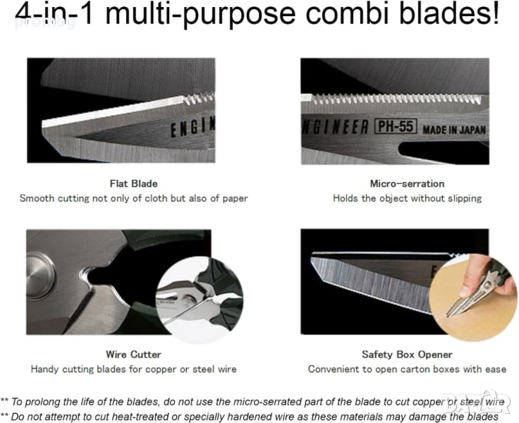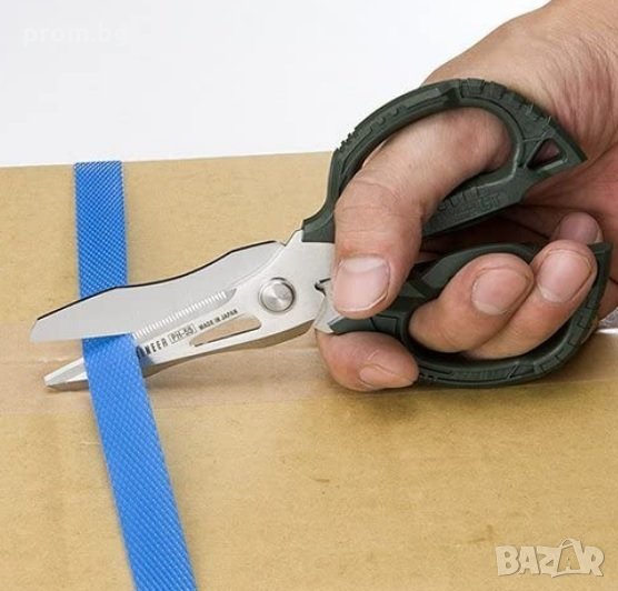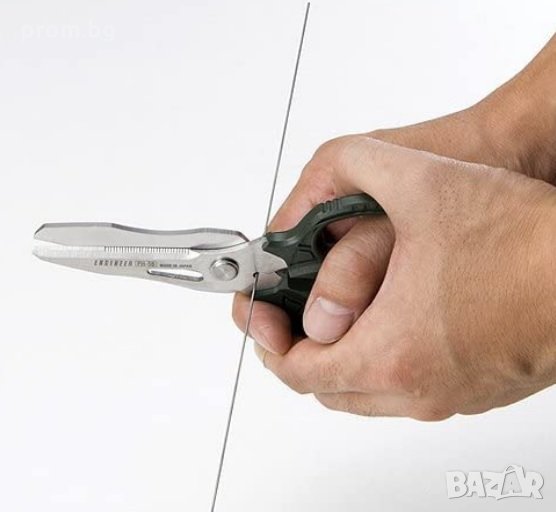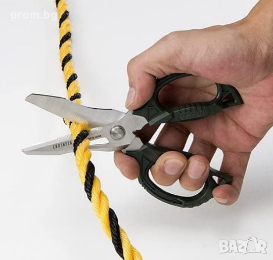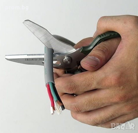 мултифункционални японски ножици ENGINEER, изключително здрави, изработени от закалена стомана и с ергономични пластмасови ръкохватки. Ножиците режат с лекота жица и кабели от мед и желязо, струни, кожа, CD-та и банкови карти. - гладко и прецизно рязане на плат и хартия