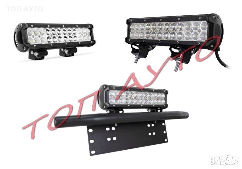 Лед бар е супер мощен двуредов 3D LED бар, придаващ фантастичен облик на Вашия автомобил, камион и др. Чист бял цвят с температура 6000K, комбиниран лъч за по-добра видимост (насочена и разпръсната светлина), който фокусира обектите пред Вас, но и осветява околността. LED барът и стойката могат да бъдат монтирани на предния или задния номер на превозното средство. Монтирането на задната броня може да даде достатъчно ясен поглед над терена при движение на заден ход. Баровете са подходящи за автомобили с висока проходимост, автомобили за всички терени, камиони, инженерингови превозни средства (багери, трегери, пътни валяци, булдозери, кранове, планински камиони и др.), специални превозни средства (пожарни коли, полицейски коли, спасителни превозни средства ), мотокари, лодки, яхти, автобуси и резервоари, кати и за офроуд осветление. Корпус, изработен от лят алуминий, устойчив на вибрации и експлоатация при висока или ниска температура.