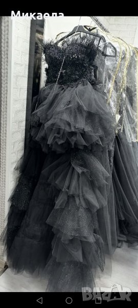 Екстравагантна абитуриентска рокля.Размер М,но горната част е корсет,така че може да стане и за S или М.При интерес ще пратя още снимки.Цена на всичко 950 лв.Обувките са номер 37.Чантата е същата като обувките,обеците и те са съобразени да отиват.Мога да ги разделя ако някой иска само роклята или само другите неща.При интерес,пишете.
