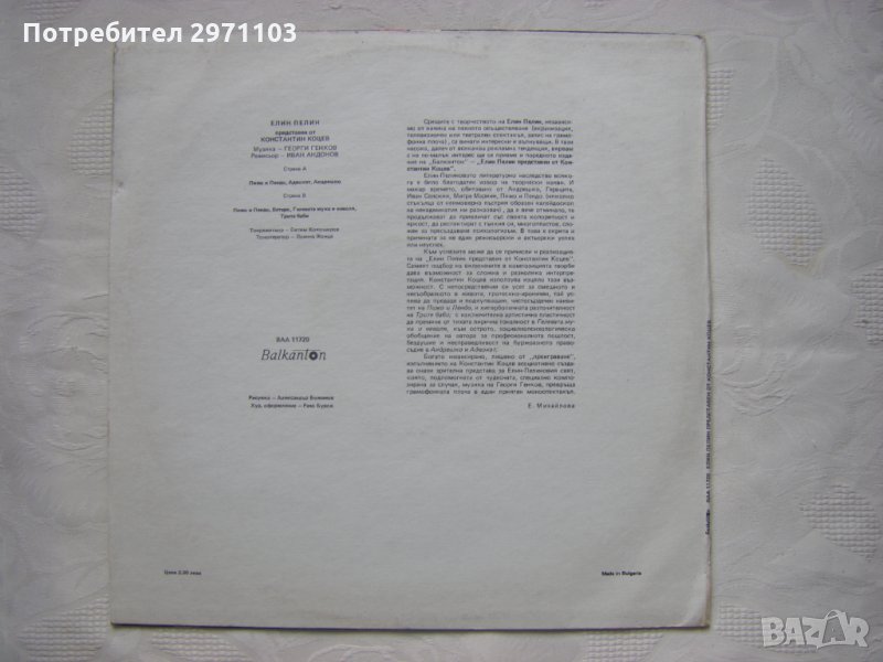 Грамофонна плоча - ВАА 11720 - Елин Пелин, представен от Константин Коцев