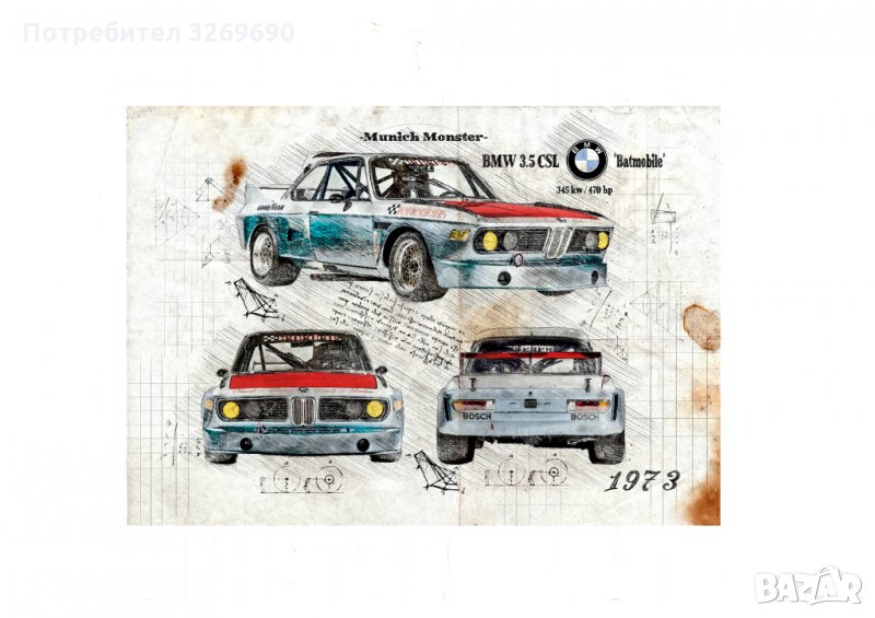 BMW БМВ М3 постер плакат Арт. стил Леонардо да Винчи → Обява 35549022