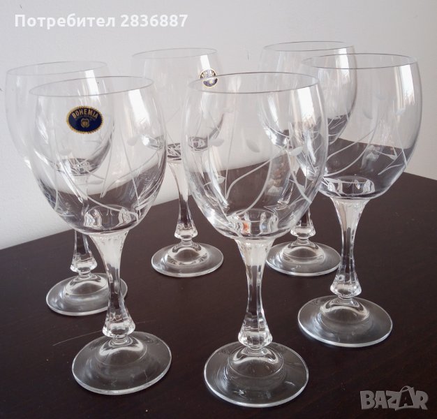 Сет 6 броя кристални чаши за вино Bohemia → Обява 35552753