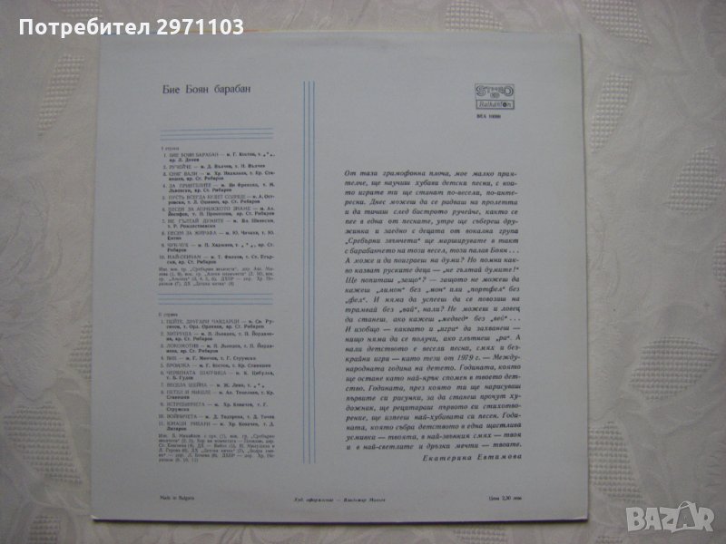 Грамофонна плоча - ВЕА 10388 - Бие Боян барабан