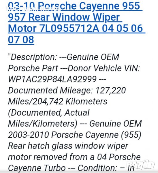 Моторче задна чистачка за Porshe cayenne 955 → Обява 35557653