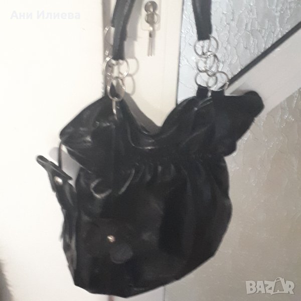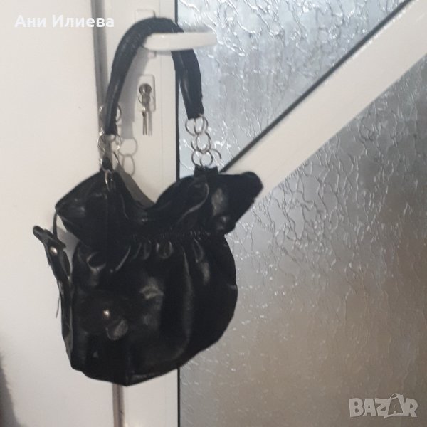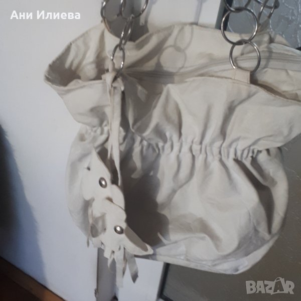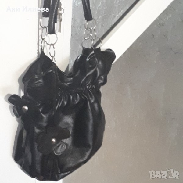 Бяла и черна чанта тип торба с две цветчета → Обява 35558360