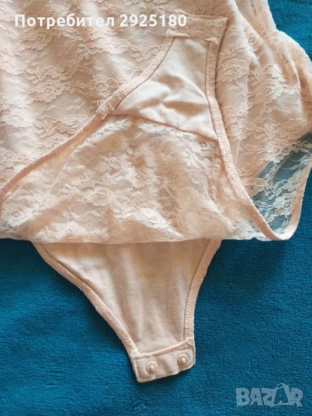 Красиво дамско боди на H&M. Цвят пудра . Мека дантела подплатена в предната част с памучна подплата имитираща бюстие . Размер S , разтегливо може да обхване и размер S / M .