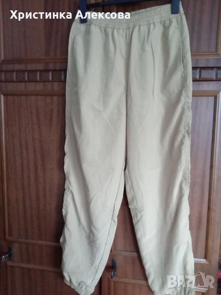 Продавам дамски спортен екип с два предни джоба, връзка и преден цип. Екипа е с памучна подплата, българско производство и отговаря на размер 40. Ето и размери - гръдна обиколка 128 см, дължина на горната част 73 см, обиколка на талията на долнището 74 см при свит ластик и 94 см при опънат ластик. Дължината на долнището е 105 см. Цвета е бежевожълто, като на последната снимка.