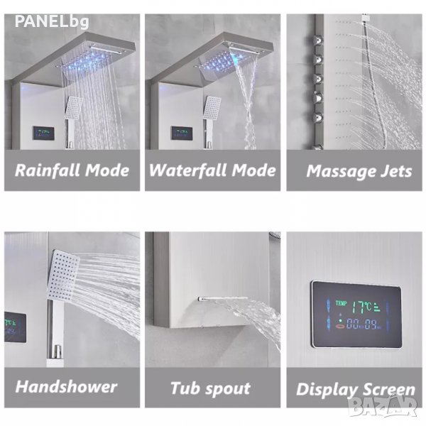 Хидромасажен душ панел Гълфос,дисплей,термоглава,лед-БЕЗПЛАТНА ДОСТАВКА