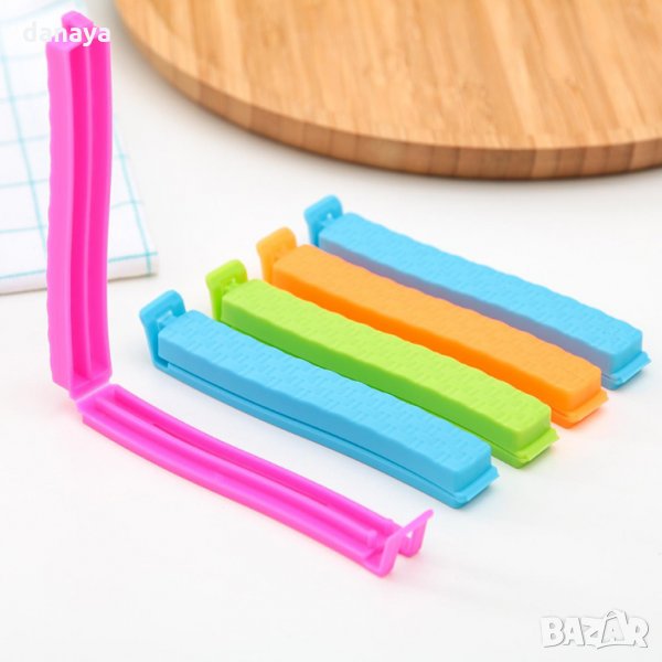 Комплект щипки за запечатване на торбички и пликове. С тези клипсове можете лесно да съхраните отворените пакети с различни храни. Така храната няма да се овлажнява и винаги ще можете да я консумирате свежа!