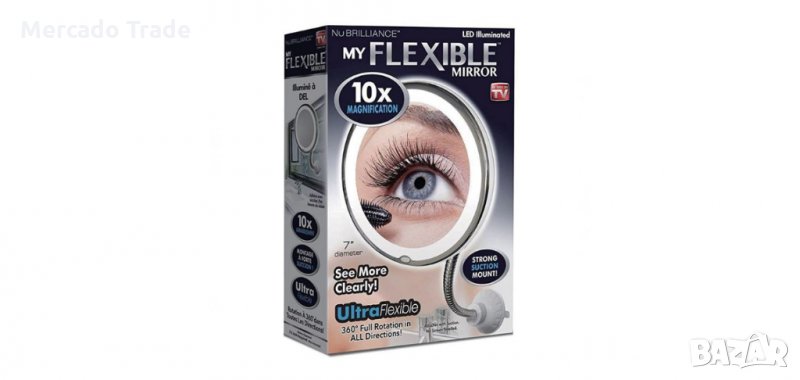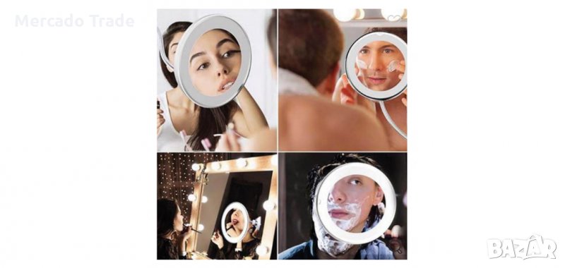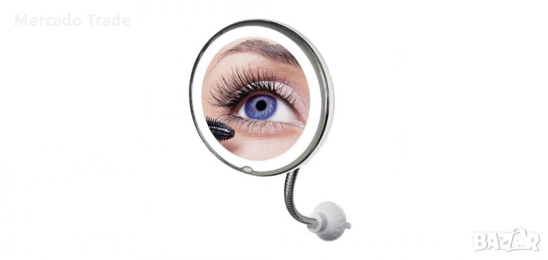 Увеличително огледало (x10) с 21 LED осветление (200 лумена) с вендуза, за да го прикрепите към всяка гладка повърхност, където искате, гъвкаво базово рамо за регулиране на огледалото според вашите предпочитания и силен светодиод за използване в помещения със слабо осветление . Помага ви да нанесете перфектно своя грим, да оформите веждите си или да се бръснете.