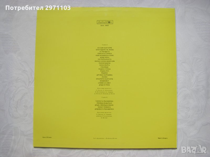 АЗ СЪМ БЬЛГАРЧЕ, БЛАГОДАРЯ ТИ, МАМО, В ГНЕЗДОТО, УБИТАТА ПТИЧКА, НАЙ ХУБАВОТО ПТИЧЕ, ДЯДО МРАЗ, НА ПЪРЗАЛКАТА, МАЛЬК СЕЧКО, ФЕВРУАРИ, РАНОБУДНИЧЕ, БАБА МАРТА, ПЧЕЛИЦИ, РОДНА СТРЯХА, РОДНА РЕЧ, РОДИНА, ДРУЖБА НЕРУШИМА, ЛЕНИН, ХРАБРОТО БЬЛГАРЧЕ, МАШИНИСТ, СЛИВИ ЗА СМЕТ, ДЯДО И РЯПА, ТОПЛАТА РЪКАВИЧКА, ЛИСИЦА И ЩЬРКЕЛ, ДЯДО, ЛИСИЦА И ВЪЛК, КОСЪТ ПОМАГА, ДЯДОВАТА РЪКАВИЧКА.