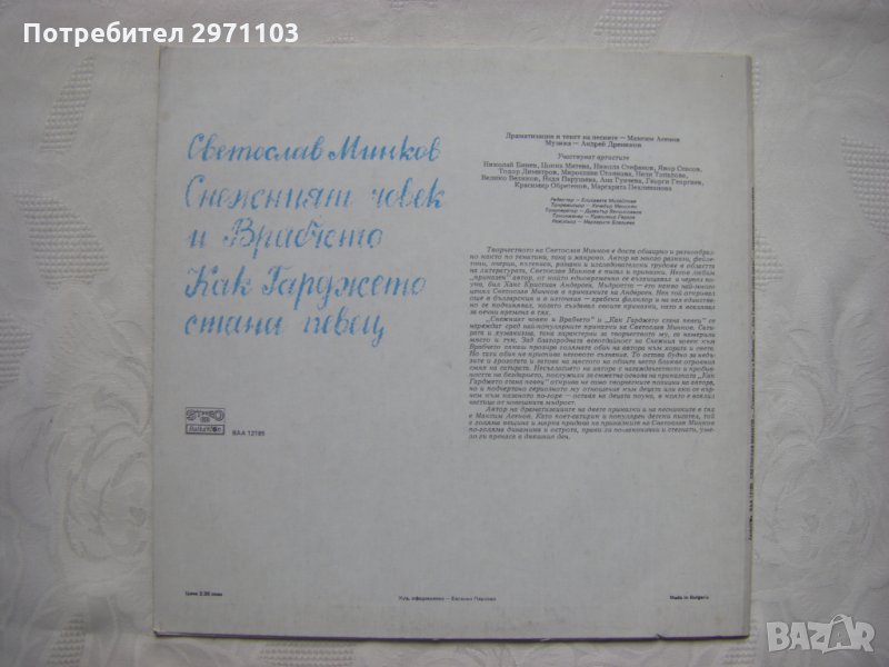Грамофонна плоча - ВАА 12185 - Снежният човек и Врабчето; Как Гарджето стана певец (Светослав Минков)