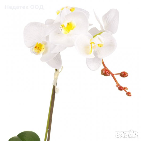 Изкуствена декоративна орхидея в саксия, 38 см, бяла/жълта → Обява 35570108
